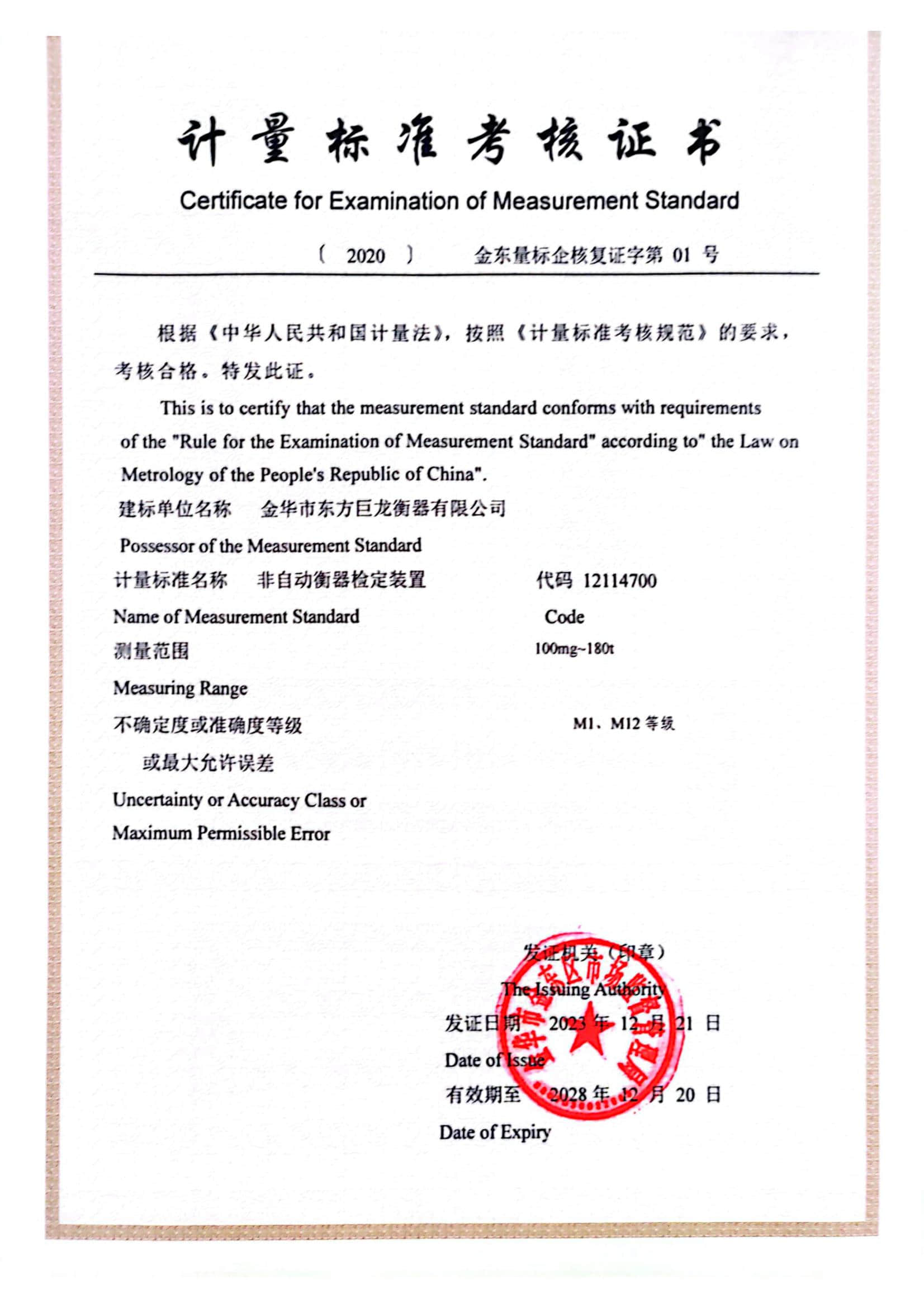 計量標準考核證書